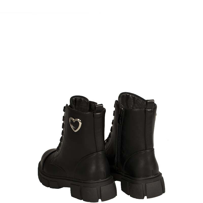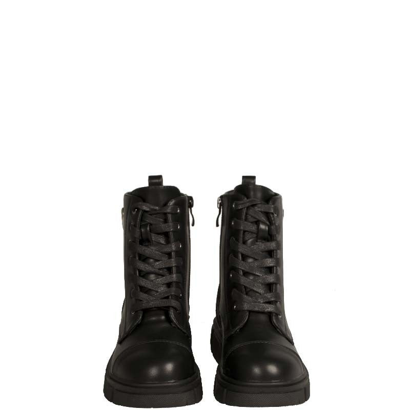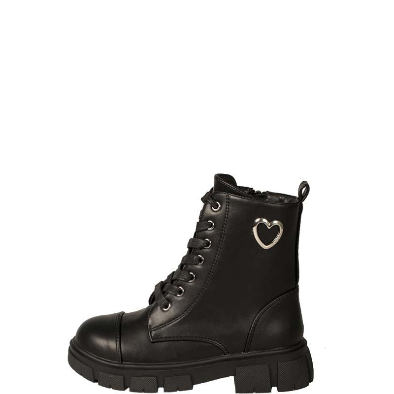 Μποτάκι για κορίτσι με δερμάτινο πάτο. Έχει κορδόνι και φερμουάρ στο πλάι.